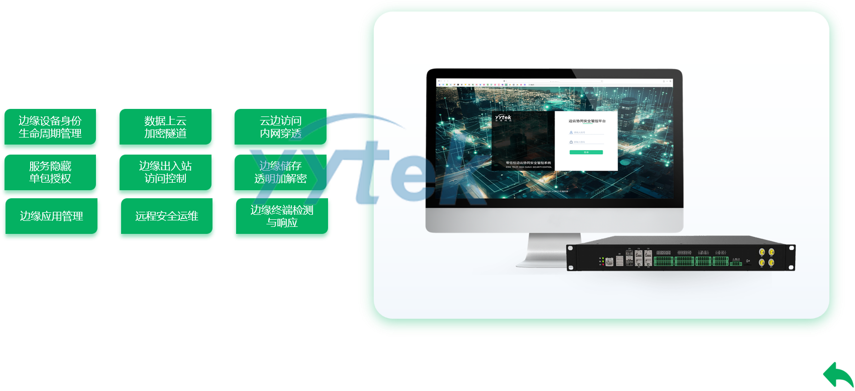 系統(tǒng)基于零信任理念,采用SDP軟件定義邊界網(wǎng)絡(luò)安全架構(gòu),為基于云、邊、端三級(jí)分層模型的物聯(lián)網(wǎng)系統(tǒng),提供增強(qiáng)身份認(rèn)證和授權(quán)、設(shè)備接入安全、網(wǎng)絡(luò)訪問與傳輸安全、數(shù)據(jù)存儲(chǔ)安全、安全應(yīng)用倉(cāng)庫(kù)、安全運(yùn)維等多維度防護(hù)。