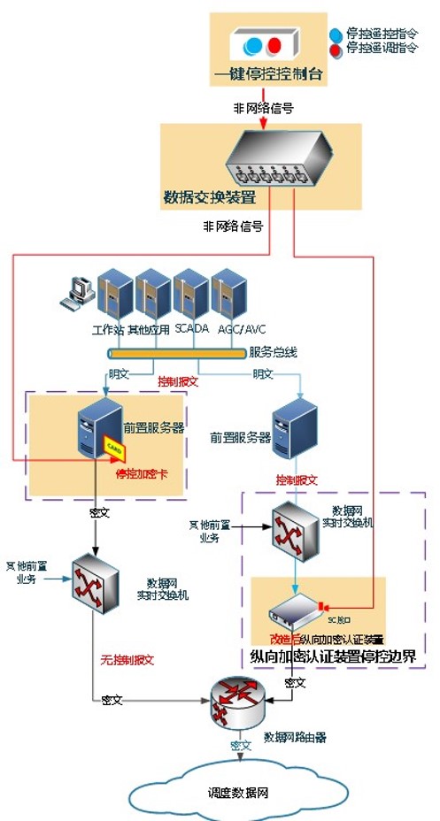 數據交換裝置:接收與識別控制臺停控命令,通過非網絡的方式將停控命令轉發送給對應的停控設備,一般部署于調度自動化系統的機房。