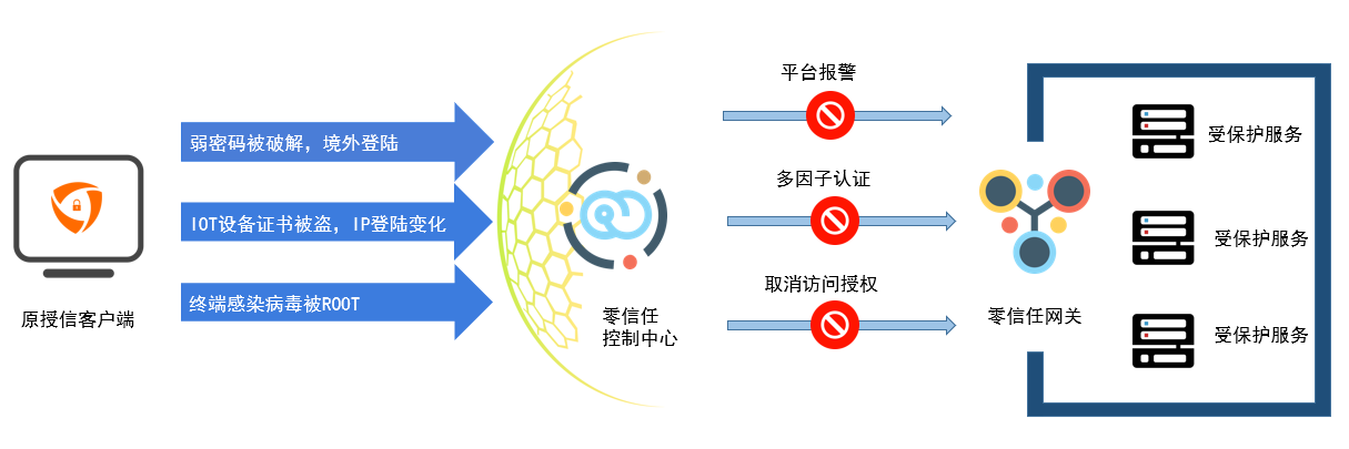 云涌零信任可以保護邊緣計算設(shè)備的身份安全與數(shù)據(jù)安全,使每個邊緣網(wǎng)關(guān)成為獨立的安全區(qū)段,網(wǎng)關(guān)內(nèi)業(yè)務(wù)服務(wù)受零信任平臺保護。