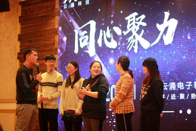 下午四點(diǎn)公司在泰州鵬欣大酒店隆重舉行了2019年云涌科技年會(huì),年會(huì)主題為"同心聚力,共創(chuàng)未來"。公司董事長(zhǎng)高南在會(huì)議中總結(jié)了過去一年的輝煌成績(jī),同時(shí)謀劃了未來云涌科技的技術(shù)及產(chǎn)品方向。