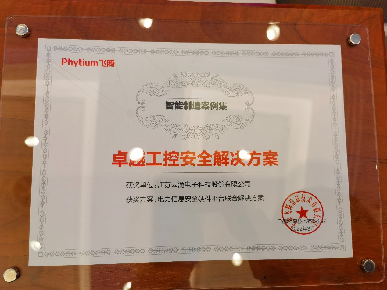 在同期舉辦的“工控和工業(yè)軟件產(chǎn)品、解決方案和創(chuàng)新應(yīng)用案例展示”活動(dòng)中,飛騰新品E2000的正式介紹發(fā)布,云涌科技《電力信息安全硬件平臺(tái)聯(lián)合解決方案》榮獲“卓越工控安全解決方案”的稱號(hào),入選智能制造案例集。