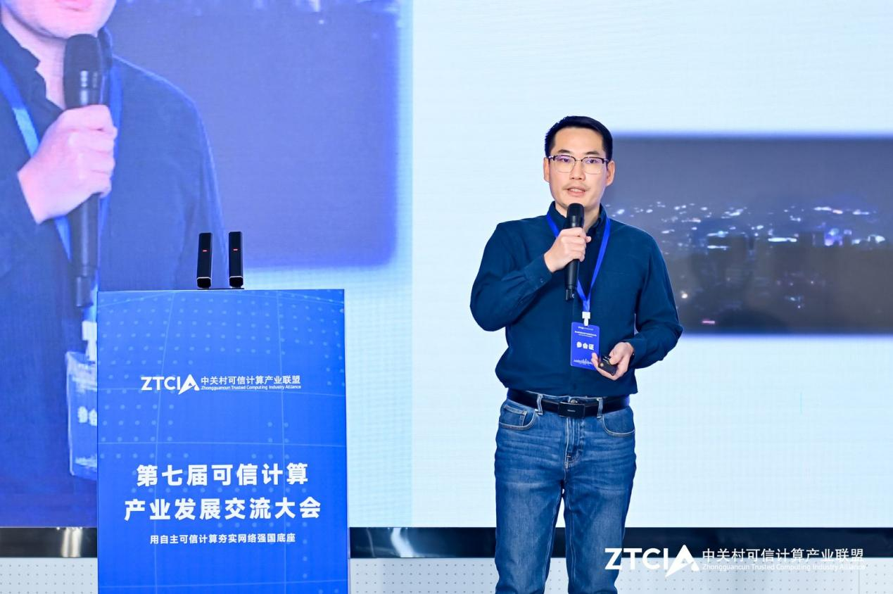 在下午的技術成果演講環節,云涌高級研發技術工程師羅輝先生,以《立足可信計算技術架構 筑牢關鍵基礎設施的安全底座》為題,向參會的各位嘉賓做了精彩的演講,展示了云涌在可信計算產業落地方向的所做的積極探索。
