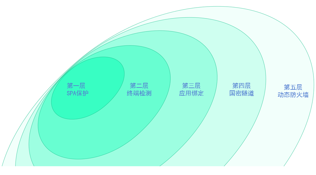 ? ? ? 首先,系統(tǒng)整體設(shè)計采用了零信任SDP架構(gòu),通過五層安全防護(hù)來實現(xiàn):